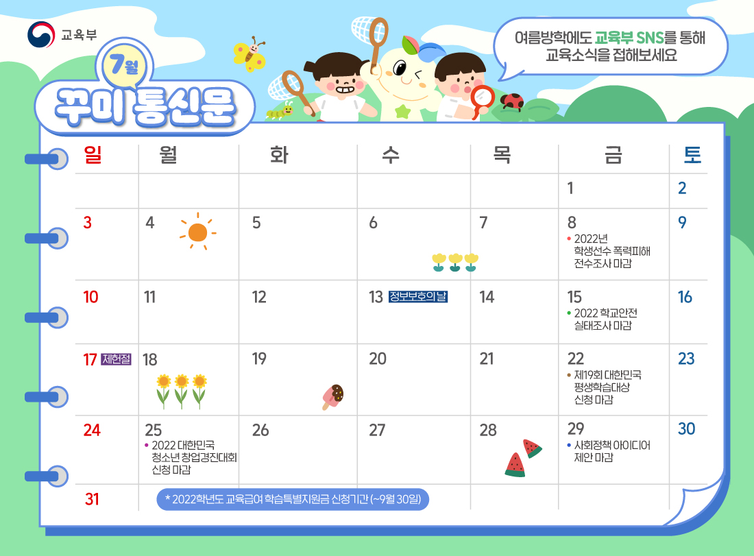 #교육부 #7월 #꾸미통신문 #정보보호의날 #평생학습대상 #사회정책아이디어 #학습특별지원금 #청소년창업경진대회 #제헌절