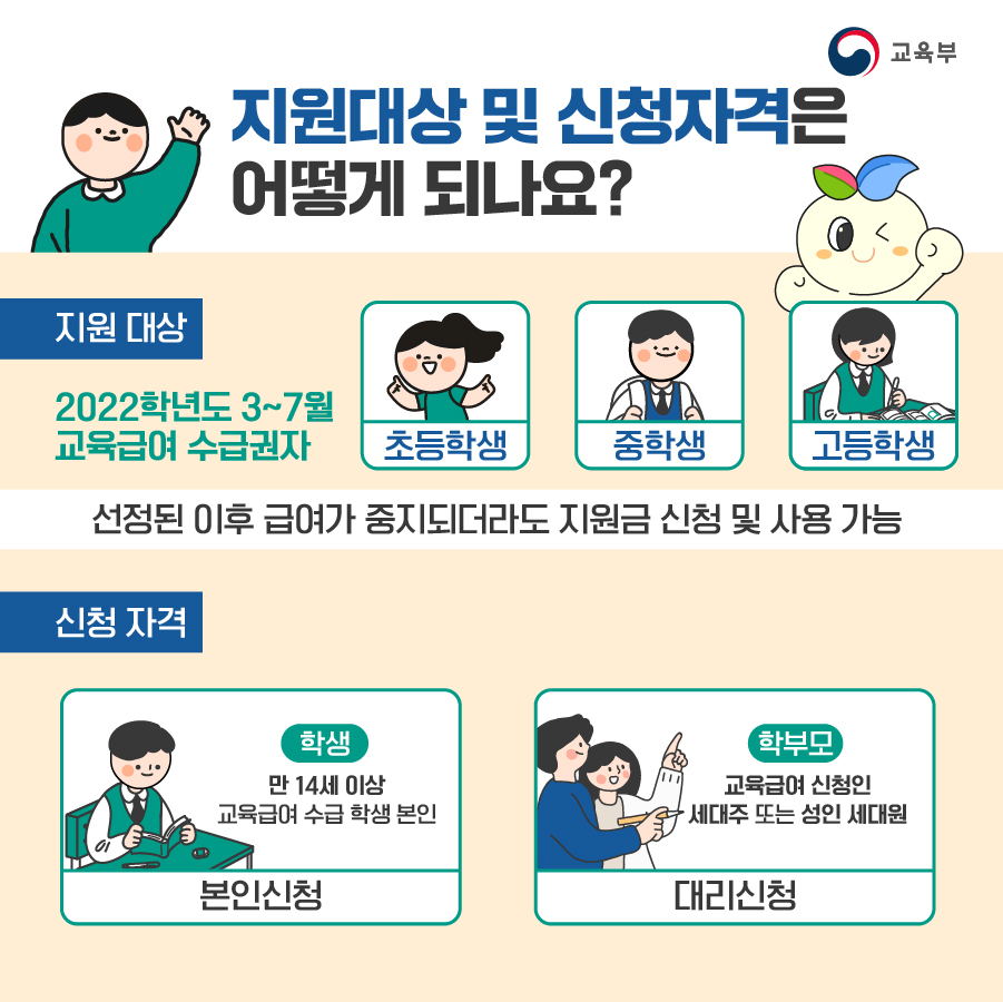 지원대상 : 2022학년도 3~7월 교육급여 수급권자