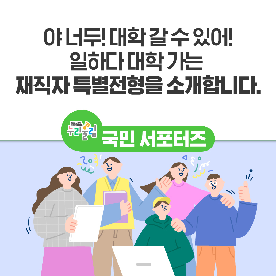 야 너두! 대학 갈 수 있어! 일하다 대학 가는 재직자 특별전형을 소개합니다. 본문