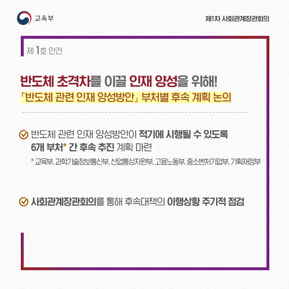 #사회관계장관회의 #교육부 #반도체관련인재양성방안 #부처협업형인재양성사업 #사회기여활동활성화방안