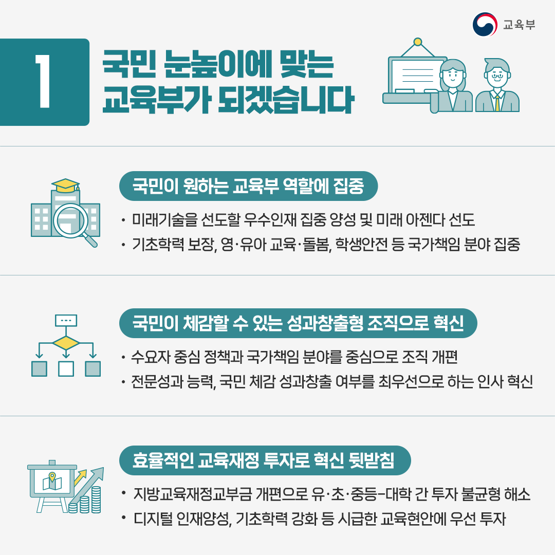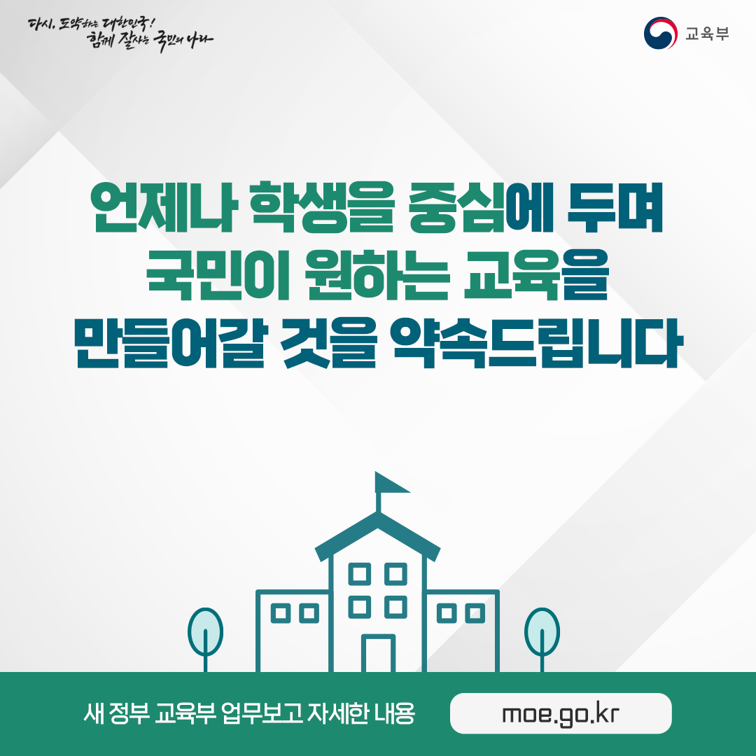 언제나 학생과 학부모를 중심에 두며 국민이 원하는 교육을 만들어갈 것을 약속드립니다.