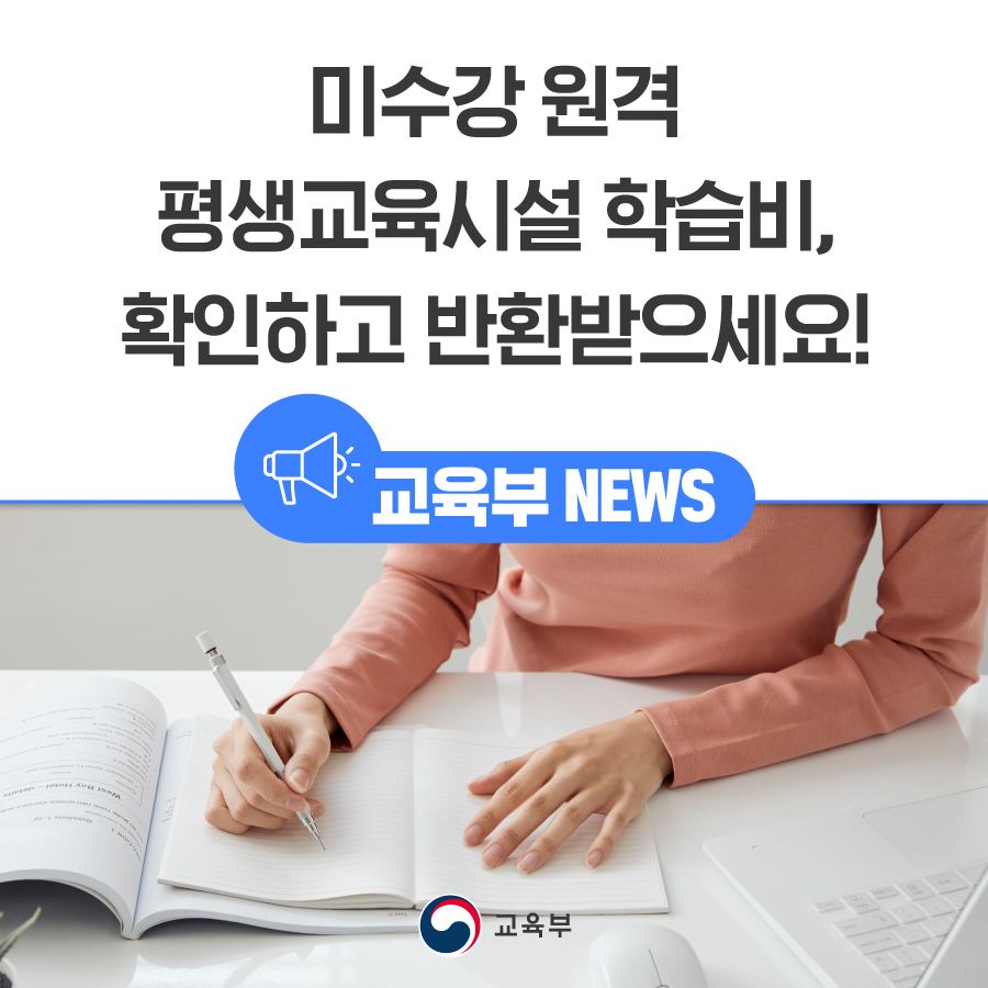 미수강 원격 평생교육시설 학습비, 확인하고 반환받으세요! 본문