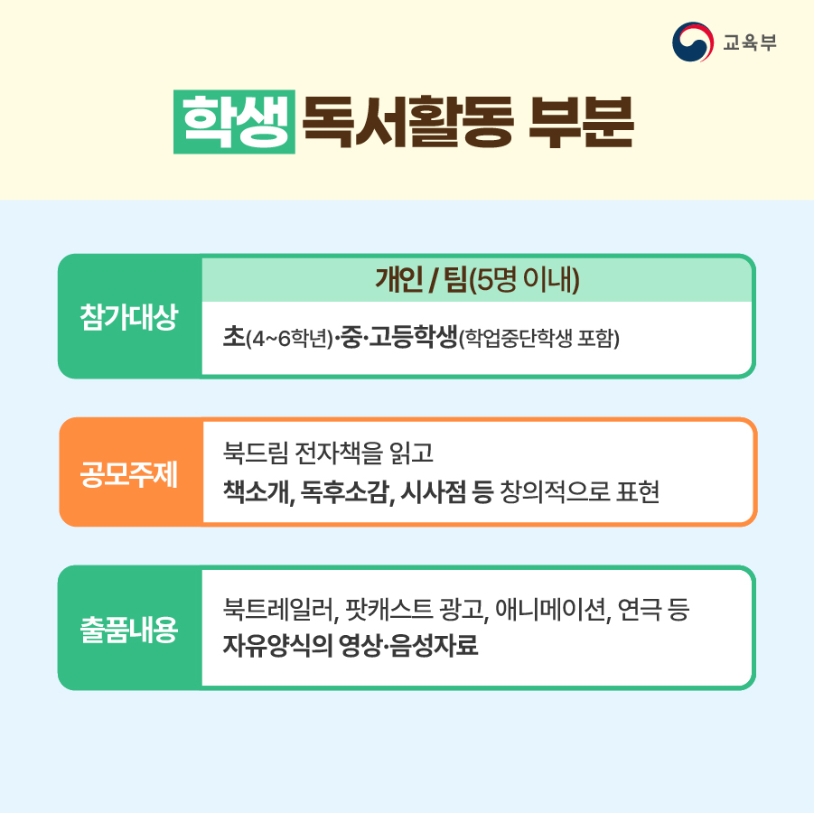 ✔참가대상 : 초등학생(4~6학년), 중·고등학생(학업중단학생 포함), 초·중·고 및 특수학교 교원