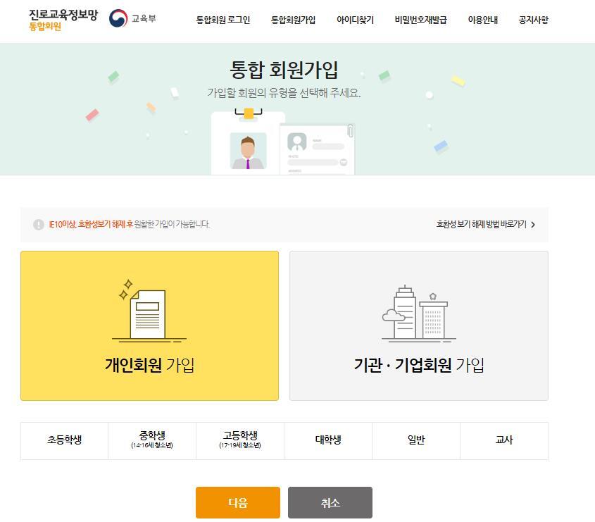 1. 먼저 커리어넷 누리집에 접속하고, 회원가입을 하여 아이디를 생성합니다.