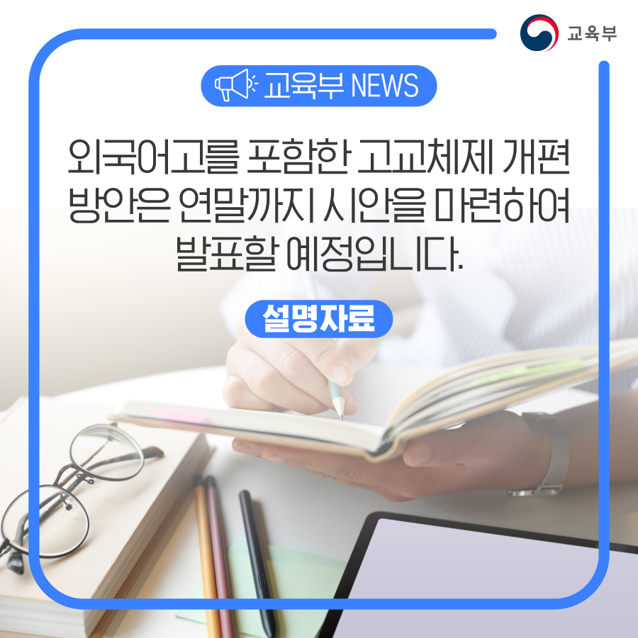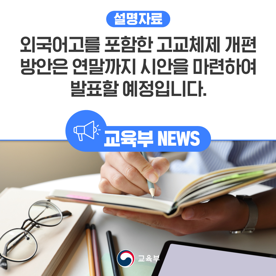 향후, 정책연구, 토론회 등 각계각층의 다양한 의견을 충분히 수렴하고, 사회적 논의를 충실히 거쳐 고교체제 개편 방안(시안)을 마련하겠습니다.
