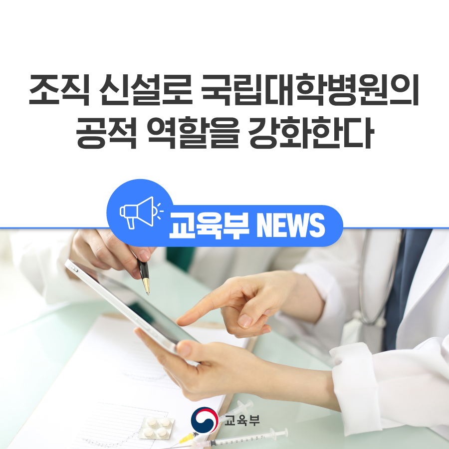코로나19 상황에서 높아진 국립대학병원의 공적 역할 강화에 대한 국민적 요구에 부응하기 위해 국립대학병원 내 전담조직이 신설된다.
