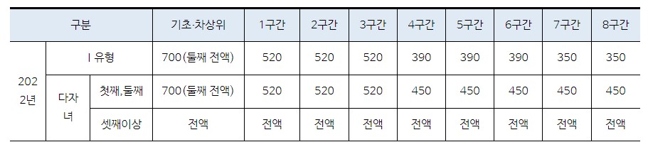 〈 2022년 국가장학금 지원 단가 (단위 : 만원) 〉