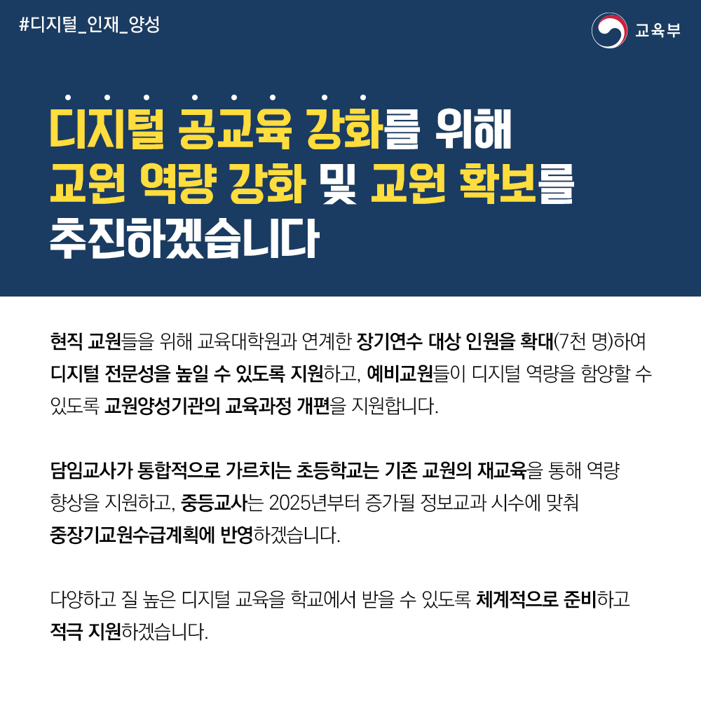 ✓디지털 공교육 강화를 위해 교원 역량 강화 및 교원 확보를 추진하겠습니다