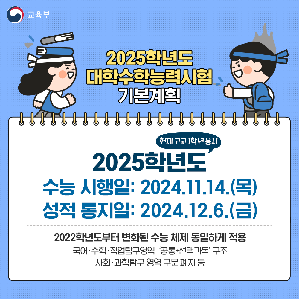 2025학년도(현재 고교 1학년 응시) 대학수학능력시험 기본계획