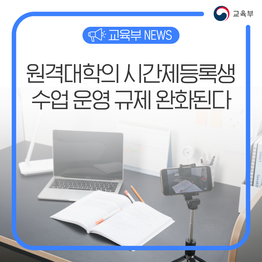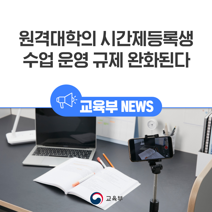 이번 개정으로 원격대학에서 시간제등록생 선발·운영하는 경우, 기존에는 ‘통합반’(정규학생과 함께 수강)만 개설할 수 있었으나 추가로 ‘별도반’(시간제등록생만으로 별도 수강)도 개설이 가능하도록 규제가 완화된다.