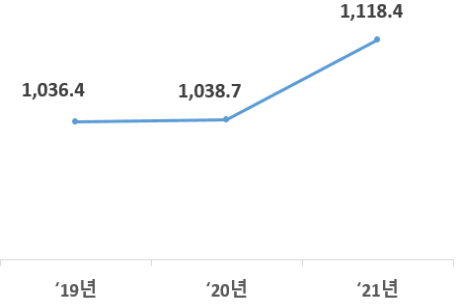 2021년 전문대학의 학생 1인당 교육비*(결산 기준)는 1,118.4만원으로 전년(1,038.7만원)보다 79.7만원(7.7%) 증가했다.