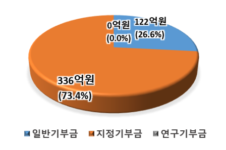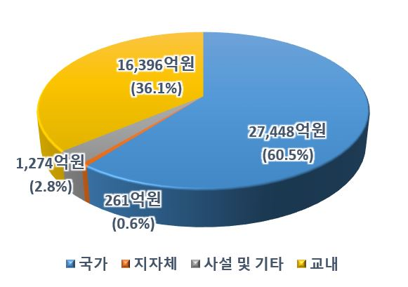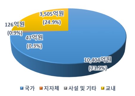 * 전임교원이 연구를 위해 교내, 중앙정부, 지방자치단체, 민간, 외국 등에서 지원받은 비용