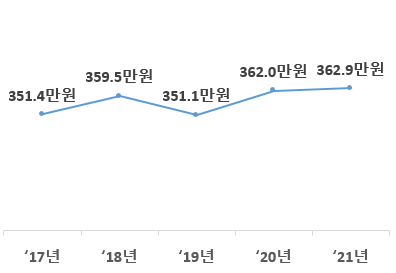 (학생 1인당 장학금) 2021년 전문대학의 학생 1인당 장학금*은 연간 362.9만원으로 전년(362.0만원)보다 0.9만원(0.2%) 증가했다.