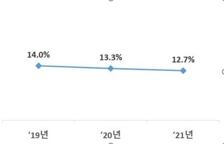 일반상환 학자금대출 이용자 수는 172,072명으로 전년(185,278명)보다 13,206명(△7.1%) 감소하였고, 취업후 상환 학자금대출 이용자 수는 237,621명으로 전년(251,679명)보다 14,058명(△5.6%) 감소했다. 학자금 대출 이용률*도 12.7%로 전년(13.3%) 대비 0.6%p 감소했다.