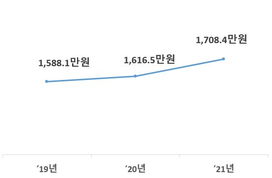 최근 3년간 학생 1인당 교육비(만원)