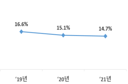 2021년(2021년 1학기와 2학기) 한국장학재단 학자금 대출을 이용한 학생 수는 114,014명으로 전년(125,548명)보다 11,534명(△9.2%) 감소했다. 일반상환 학자금대출 이용자 수는 26,770명으로 전년(33,067명)보다 6,297명(△19.0%), 취업후 상환 학자금대출 이용자 수는 87,244명으로 전년(92,481명)보다 5,237명(△5.7%) 감소했다. 또한, 학자금 대출 이용률*은 14.7%로 전년(15.1%)보다 0.4%p 감소했다.