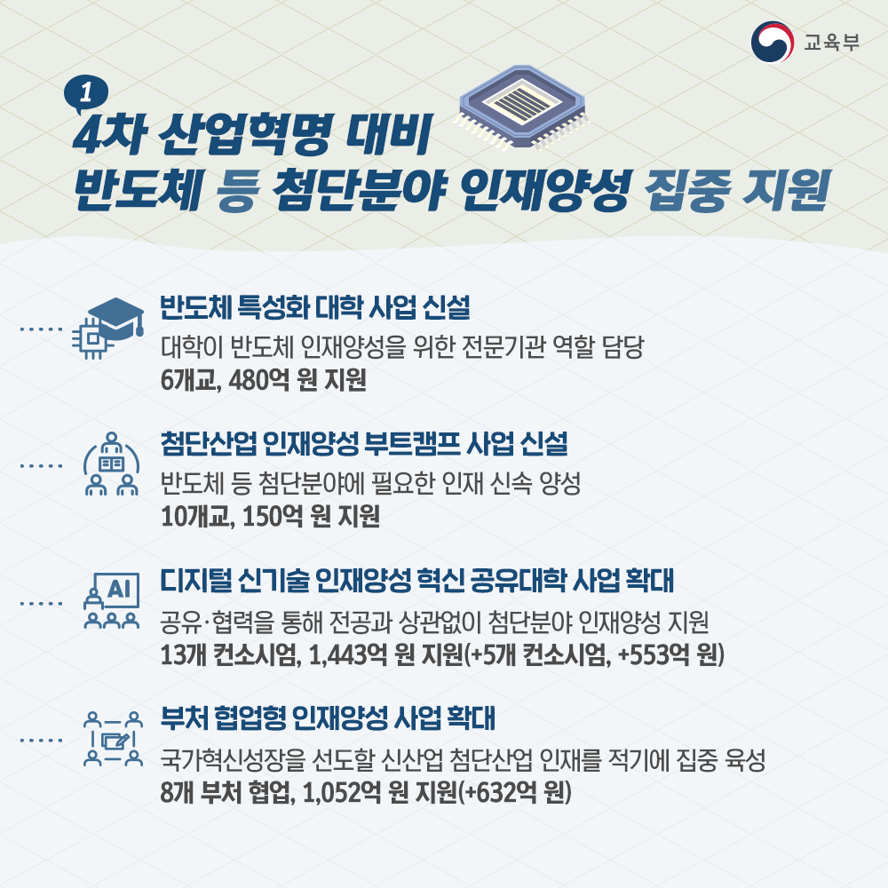 ✓4차 산업혁명 대비 반도체 등 첨단분야 인재양성 집중 지원