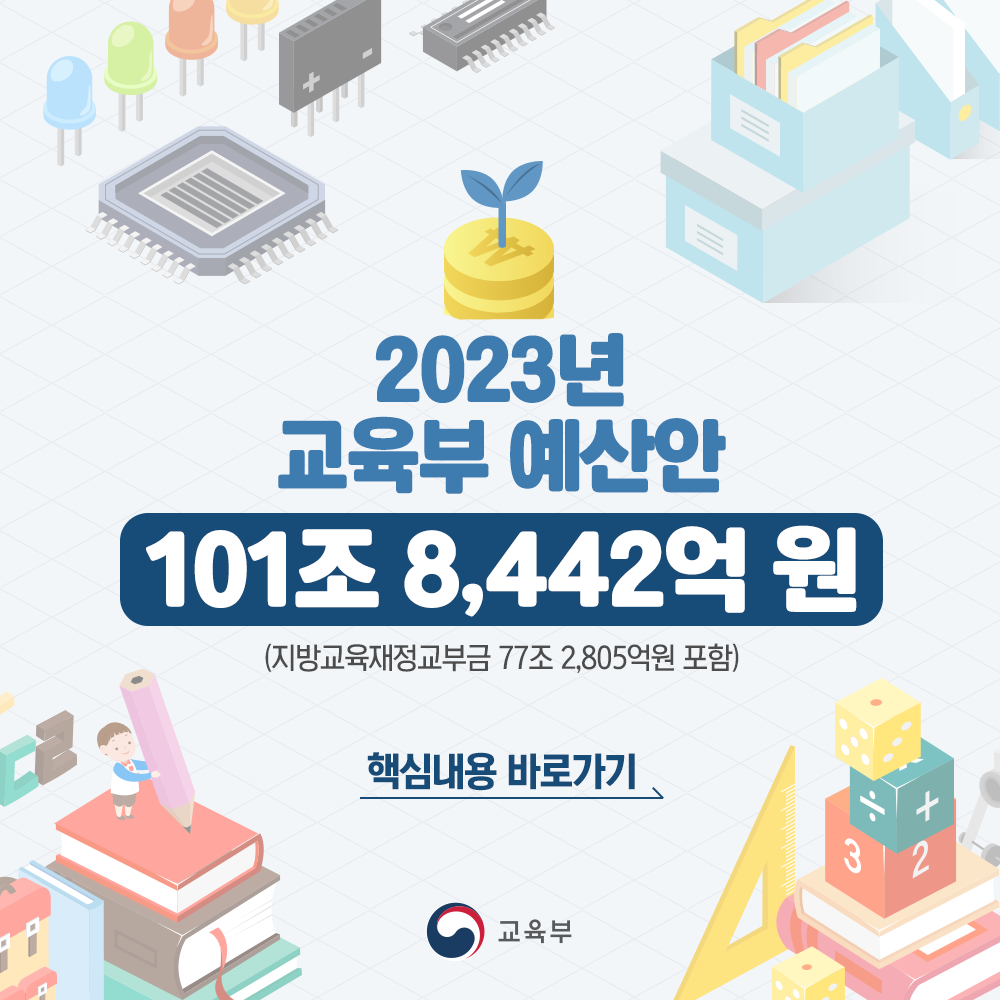 2023년 교육부 예산안 101조 8,442억 원핵심내용 바로가기!! 본문