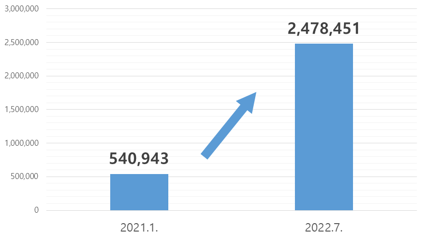 ※ (누적 가입현황) 총 2,288개교, 477,867명(2021.3.29.개통~2022.7.)