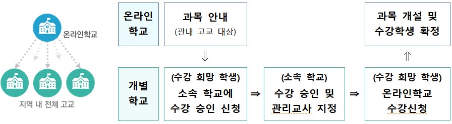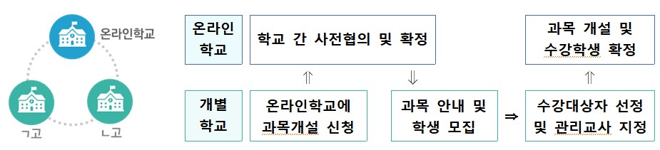 또한 개별 고등학교는 개설이 어려운 과목이 있을 경우, 온라인학교에 의뢰하여 과목을 개설할 수도 있다.