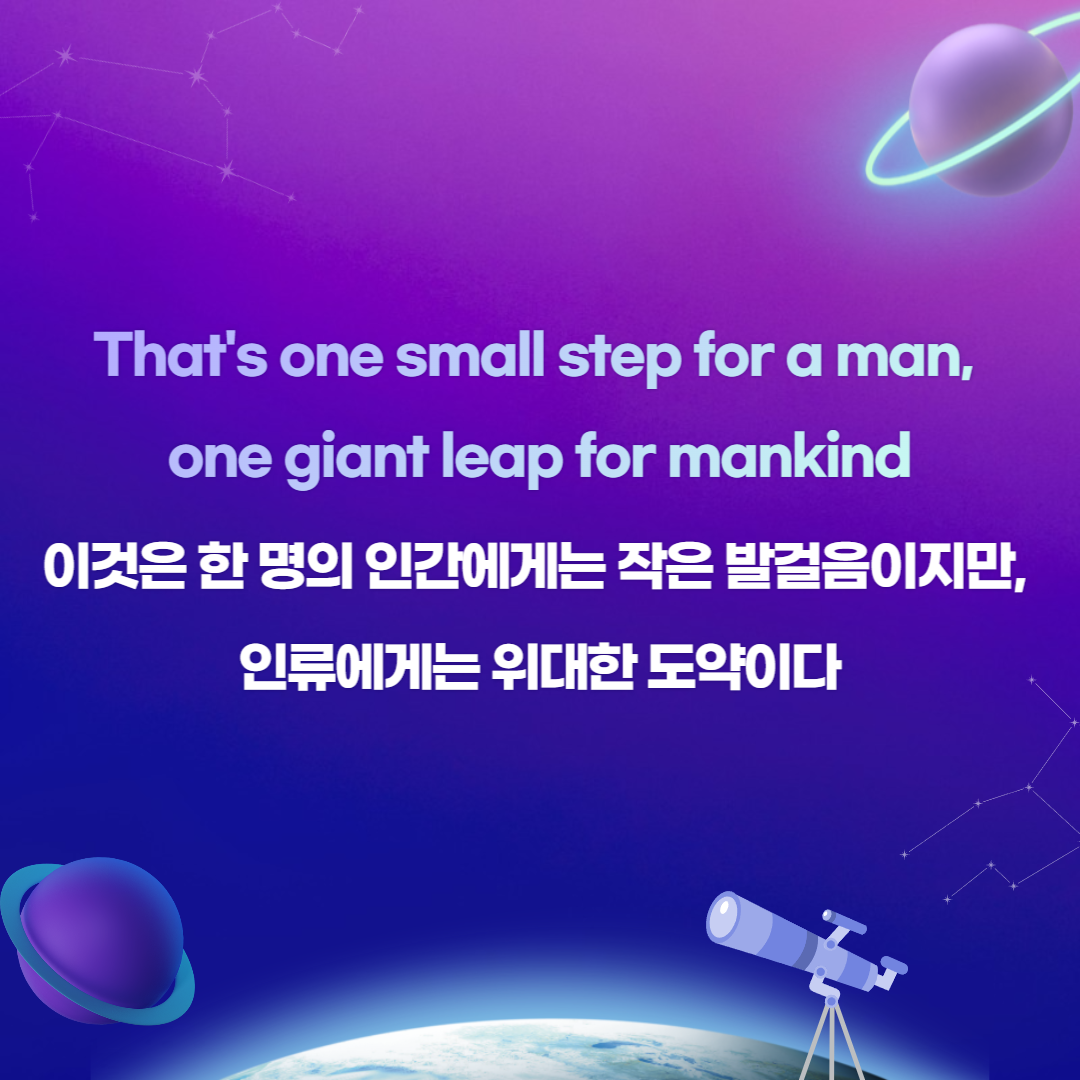 ‘이것은 한 명의 인간에게는 작은 발걸음이지만, 인류에게는 위대한 도약이다’ 위 명언을 책이나 영상에서 한 번쯤은 들어봤을 텐데요. 미국의 우주 비행사인 ‘닐 암스트롱’이 인류 최초로 달에 발을 딛으며 한 말입니다. 그럼 닐 암스트롱은 드넓은 우주를 향해 어떻게 이동했을까요? 바로 아폴로 11호라는 ‘우주선’을 타고 달 착륙을 시도했습니다.