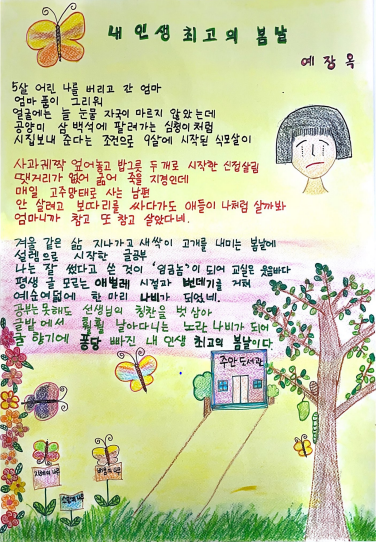 시화전 공모는 ‘문해, 지금 나는 봄이다’라는 주제로 진행되었으며, 전국에서 14,260명의 학습자가 참여하여 삶의 역경, 한글 공부의 즐거움, 꿈과 희망 등을 작품으로 진솔하게 펼쳐냈다.