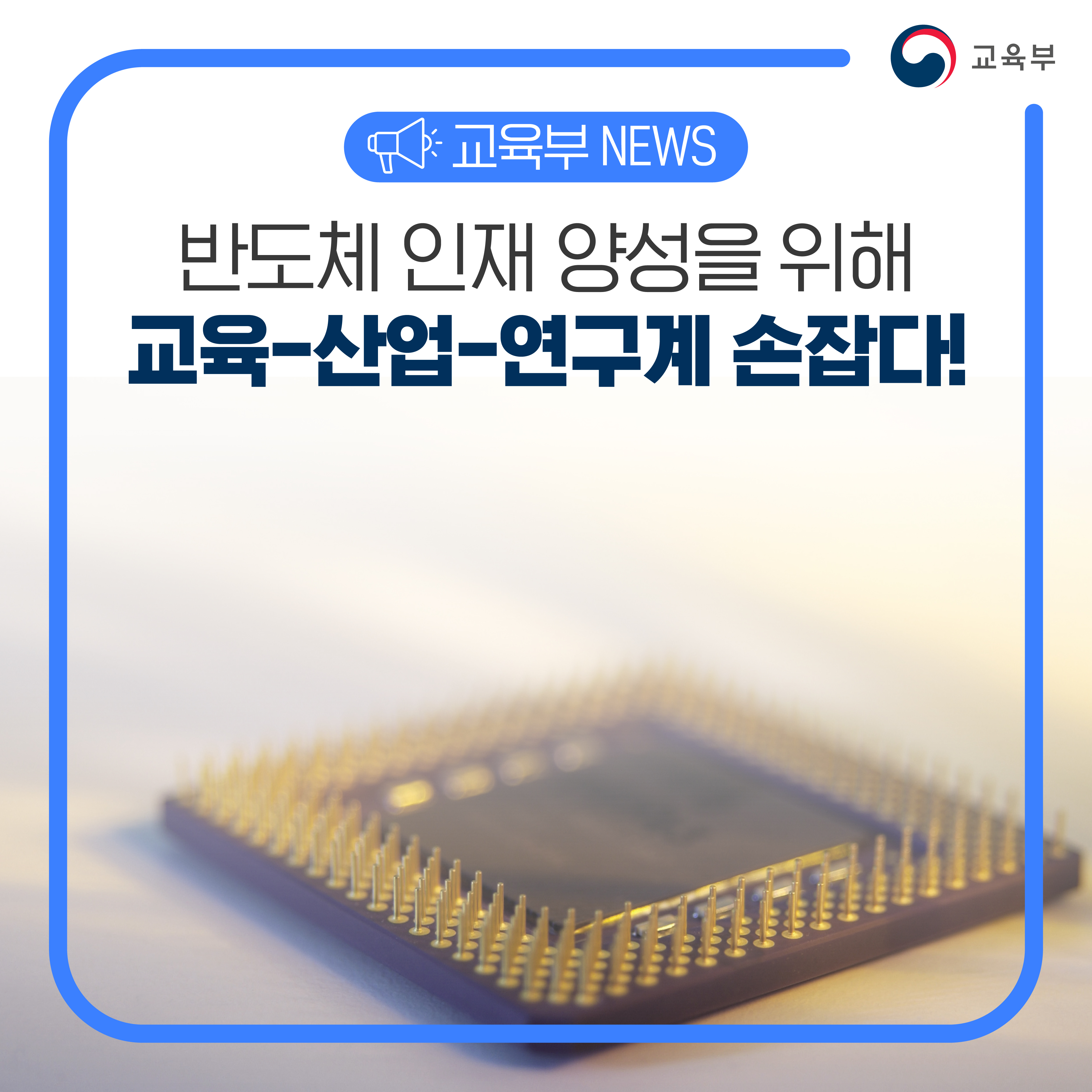 교육부는 반도체 관련 인재 양성을 위해 정부-교육계-산업계-연구계 기관과 함께 ‘반도체 인재양성 지원 협업센터(이하 ‘협업센터’)’ 업무협약을 9월 6일(화) 켄싱턴호텔 여의도에서 체결한다.