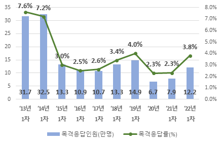 이번 조사는 학생들의 자발적 참여를 원칙으로 온라인과 모바일을 통해 진행되었으며, 참여율은 82.9%(321만 명)으로 2021년 1차 조사 대비 5.9%p(23만 명) 감소했다.