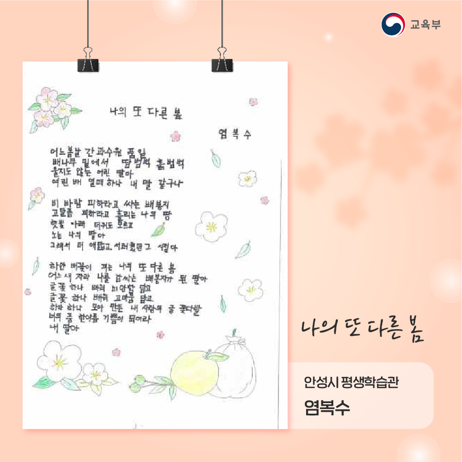 #교육부 #성인문해 #시화전 #우수작품 #성인문해교육