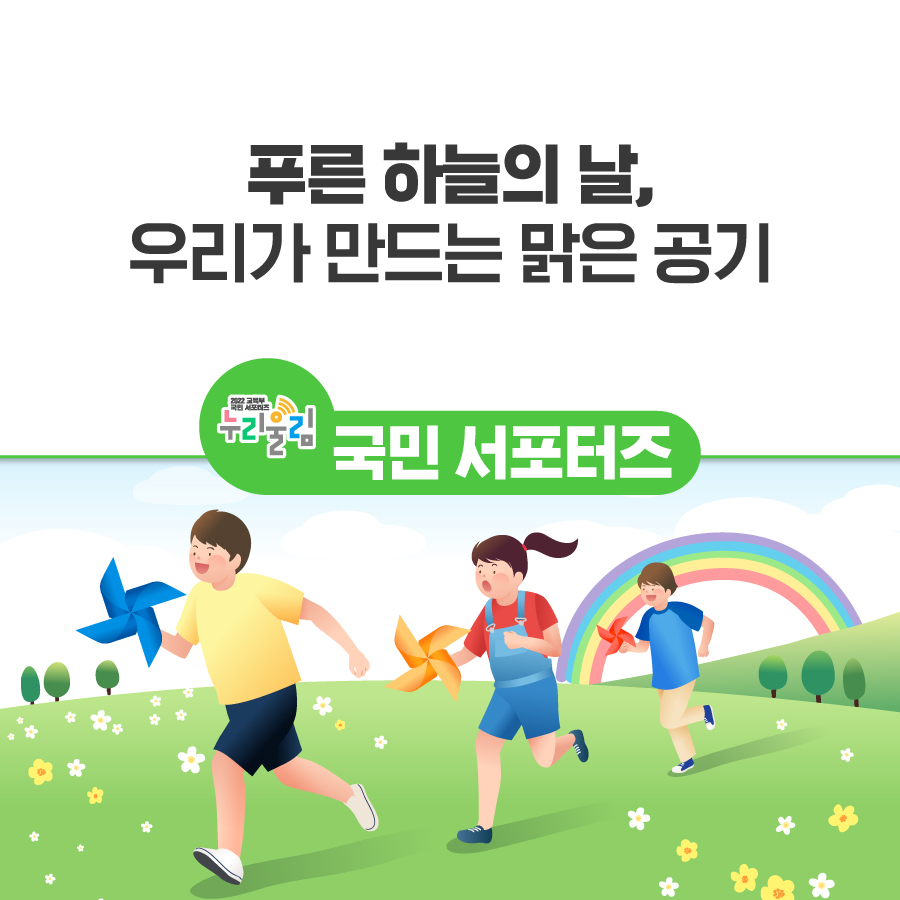 더욱 건강한 대기환경을 위해서는 개인이 아닌 우리 모두의 노력이 필요합니다. 푸른 하늘, 함께 만들어가요!