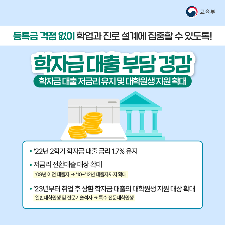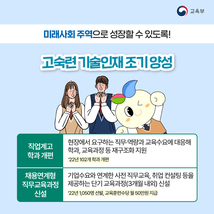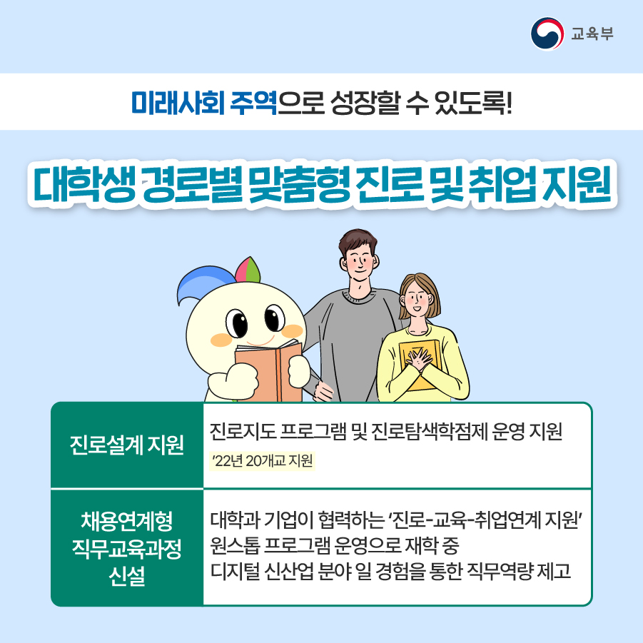 #교육부 #교육분야 #청년정책 #국가장학금 #학자금대출부담경감 #대학생거주부담완화 #고숙련 #기술인재 #조기양성 #맞춤형진로 #취업지원 #매치업확대