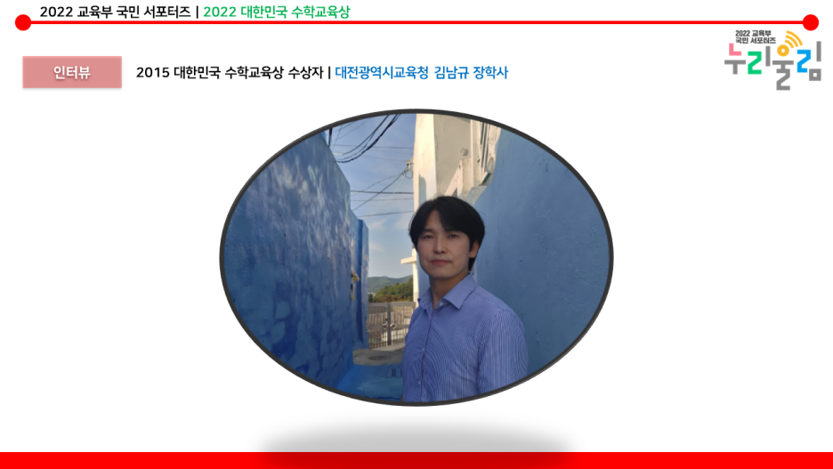 오늘은 2015년 대한민국 수학교육상 수상자인 대전광역시교육청 소속 김남규 장학사님을 만나 수학교육 활성화를 위해 어떠한 활동을 하셨는지 알아보겠습니다.