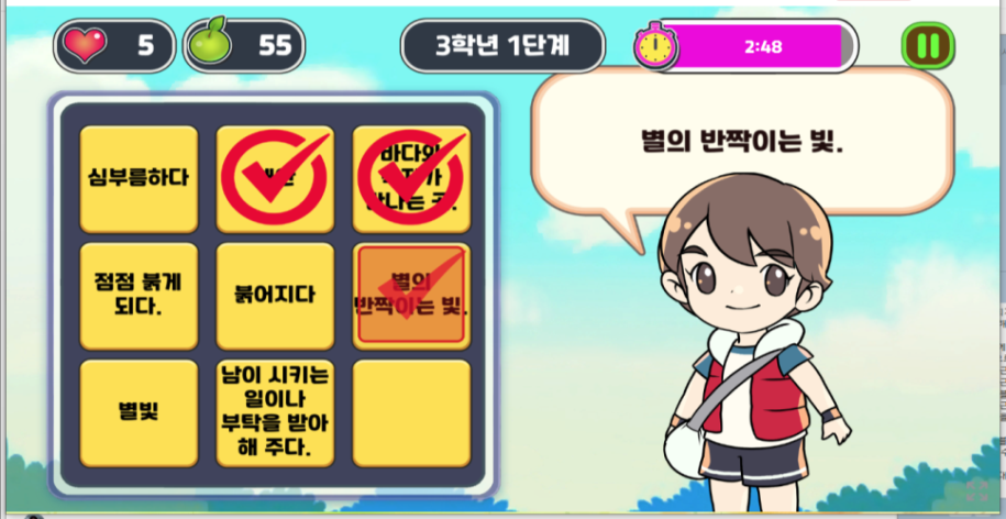 “아이가 가정에서 어휘 게임을 자발적으로 하는 모습을 보니 만족스러웠습니다. 처음에는 평소같이 게임을 하는 줄 알았는데 게임을 하면서도 단어를 자연스럽게 학습할 수 있도록 되어 있어서 상당히 뿌듯합니다.” (청주 ○○초 학부모)