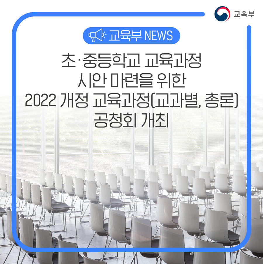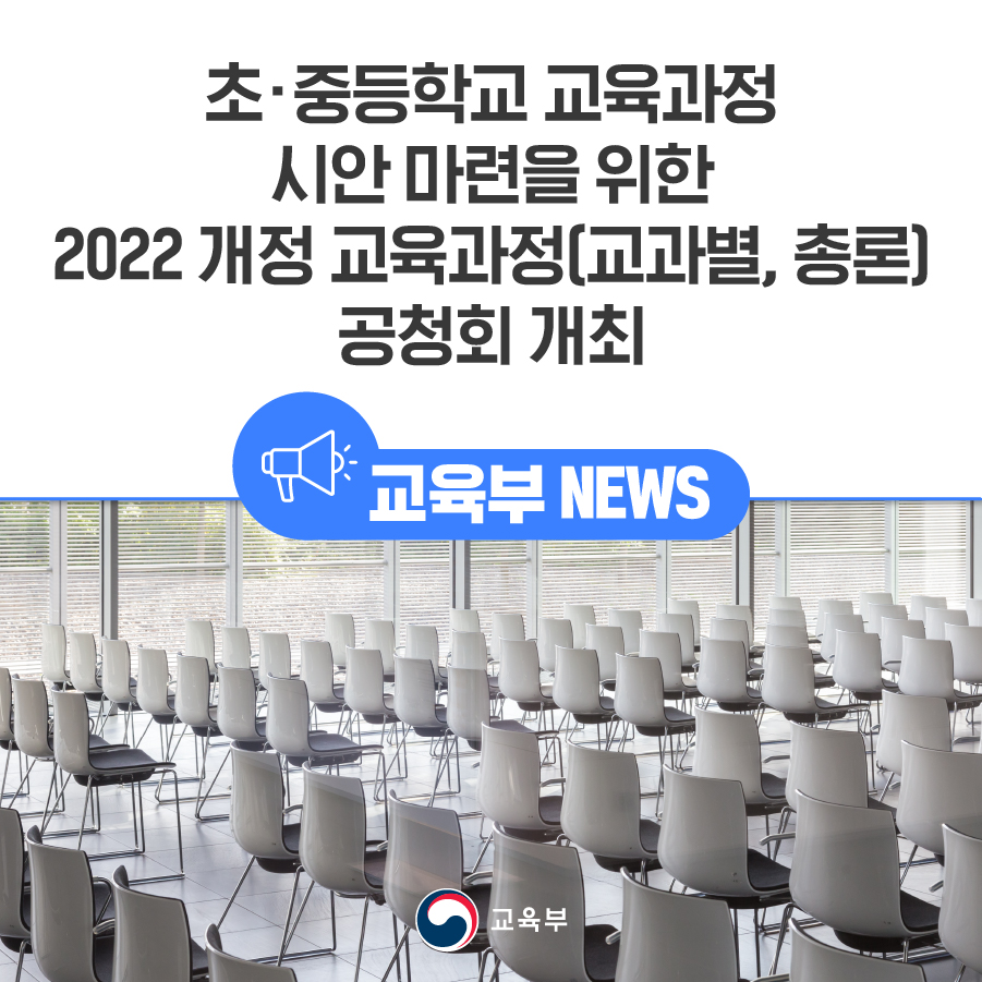 9월 28일(수)부터 시작한 2022 개정 교육과정 교과별 공청회가 10월 7일(금), 9개 교과 교육과정 시안 공청회로 마무리 되고, 10월 8일(토)은 2022 개정 교육과정 총론 시안에 대한 공청회가 실시된다.