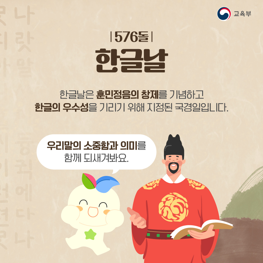 #교육부 #10월9일 #한글날 #세종대왕 #576돌 #훈민정음 #창제기념 #한글 #우수성