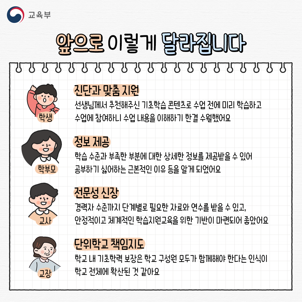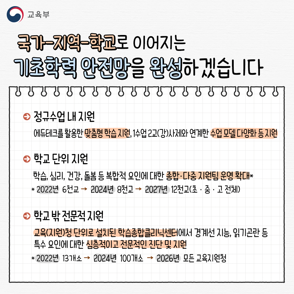 국가-교육청-학교가 협력하여 모든 학생의 기초학력 보장을 추진합니다