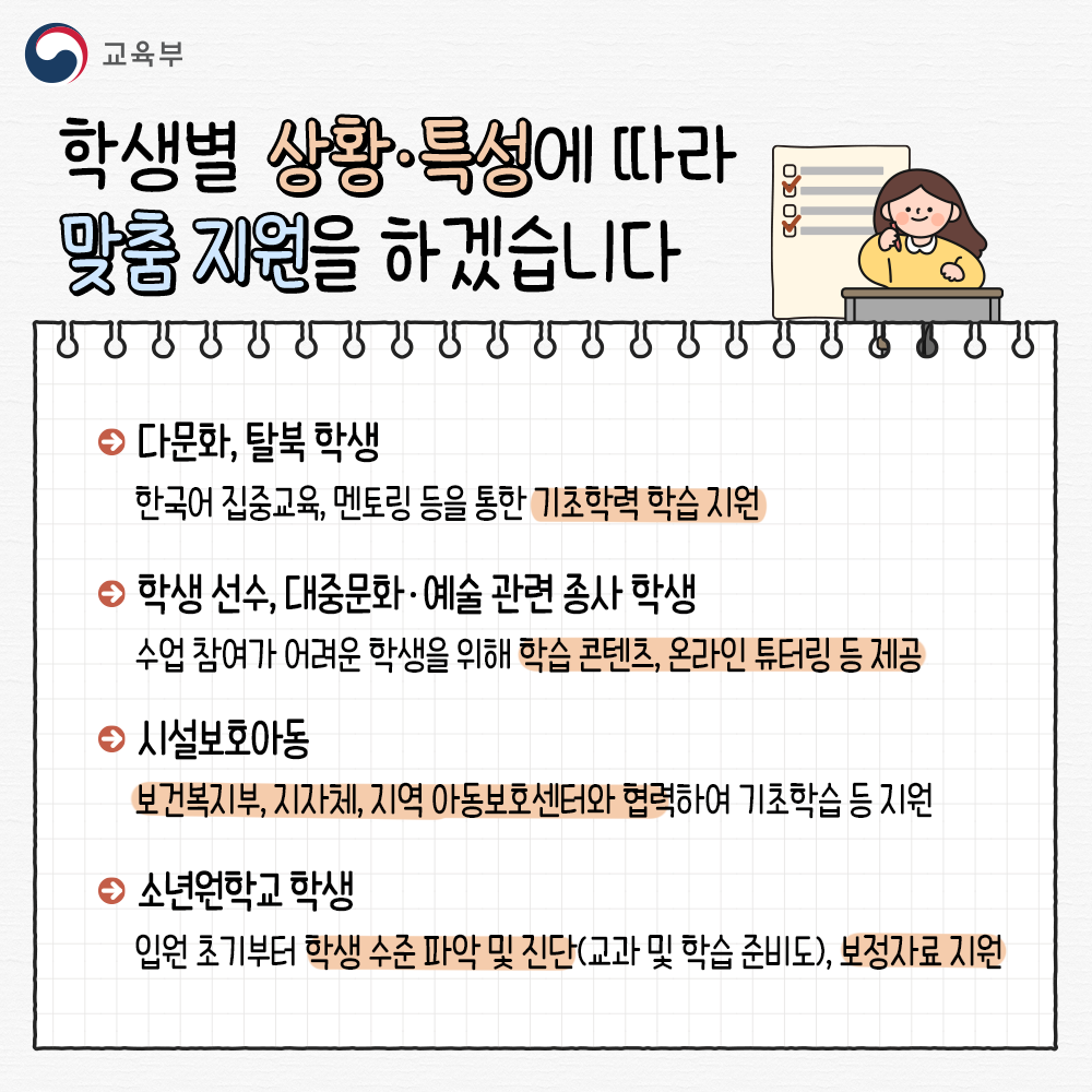 ✔학생별 상황·특성에 따라 맞춤 지원을 하겠습니다