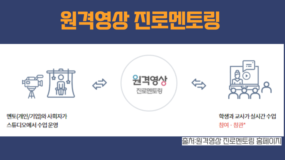 진로는 ‘앞으로 나아갈 길’이라는 뜻으로 자신의 인생을 설계하고 계획하는데 아주 중요한 문제입니다. 자신의 진로를 결정하는데 필요한 정보를 제공하는 좋은 프로그램이 있는데요. 바로 교육부에서 진행하는 ‘원격영상 진로멘토링’ 프로그램입니다.