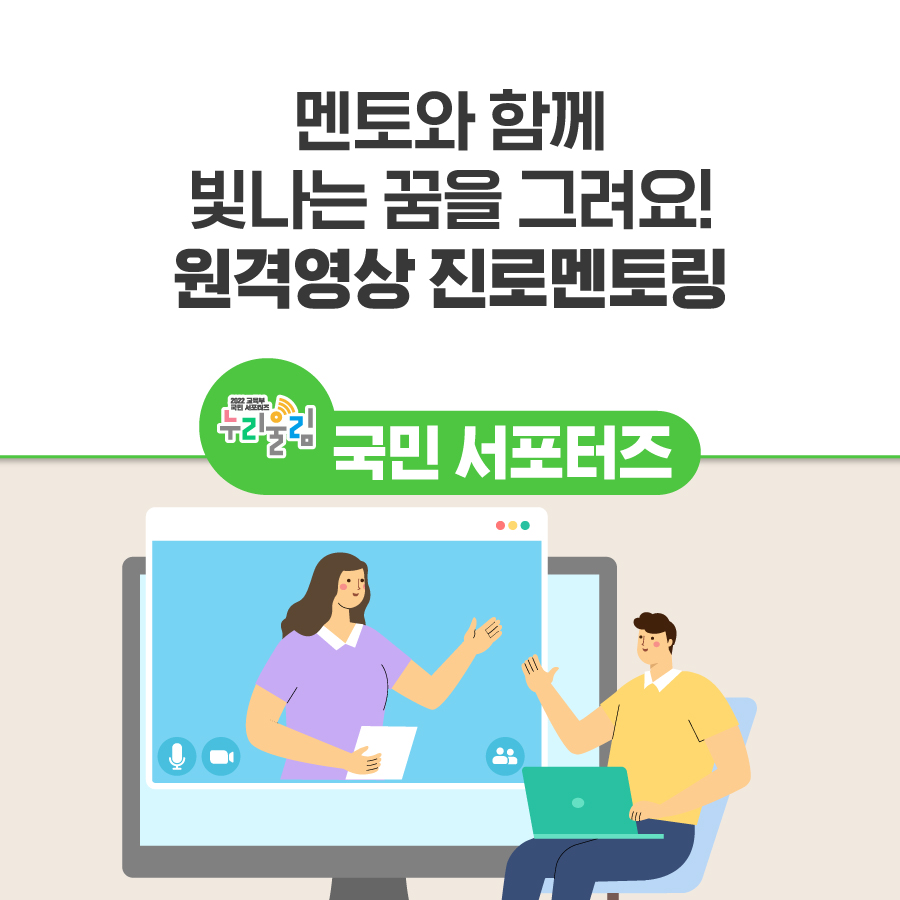 오늘은 원격영상 진로멘토링과 함께 하반기에 예정되어있는 프로그램을 소개하려고 합니다. 그럼, 진로 탐구를 도와주는 원격영상 진로멘토링에 대해 함께 알아볼까요?