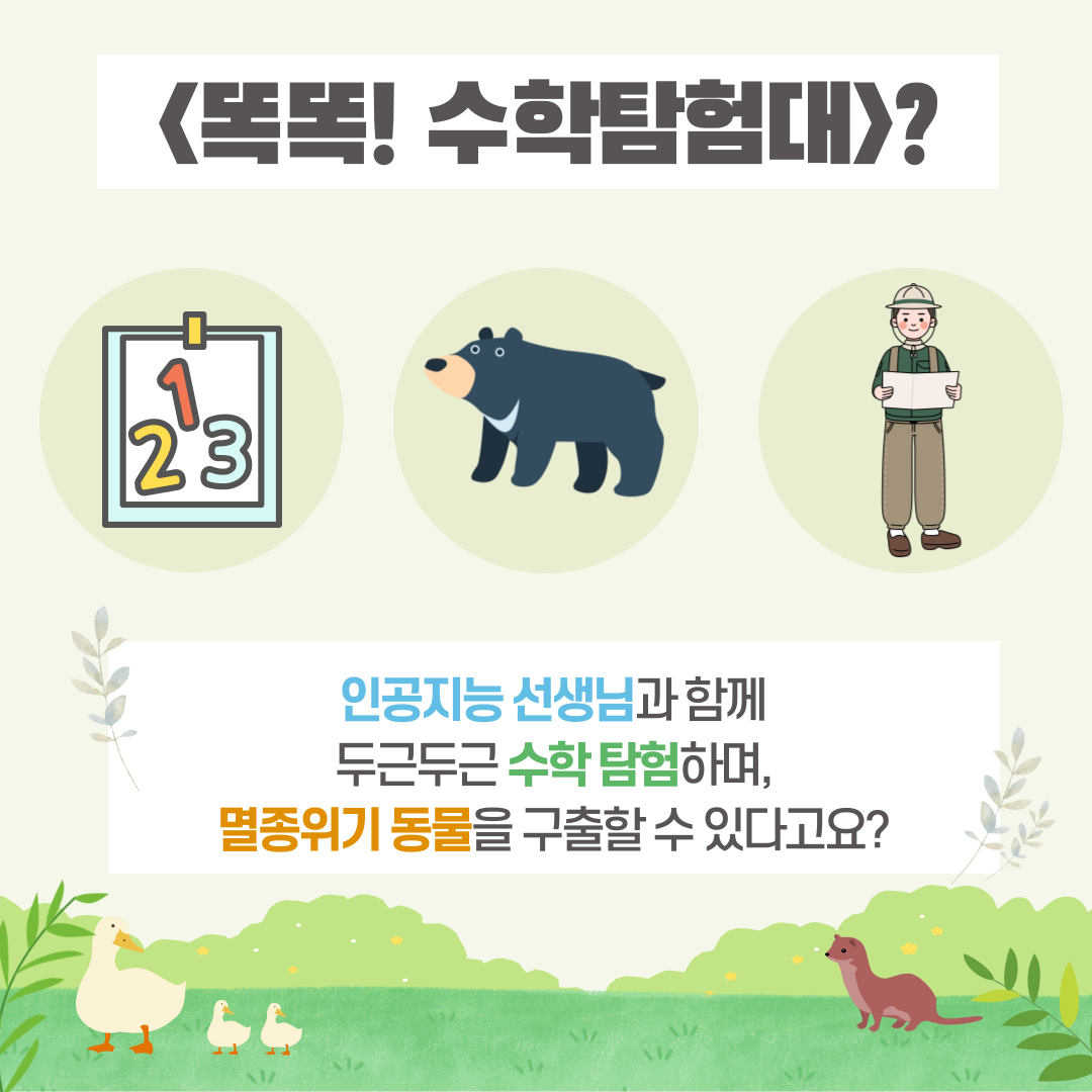지금까지 <똑똑! 수학탐험대>와 인공지능 선생님의 역할에 대해 알아보았습니다. 앞으로 더 많은 인공지능 활용 교육 시스템이 개발 예정이라고 하는데요. 학생들의 디지털 역량을 위한 디지털 교육 정책에 많은 관심 부탁드리며, 마치도록 하겠습니다.