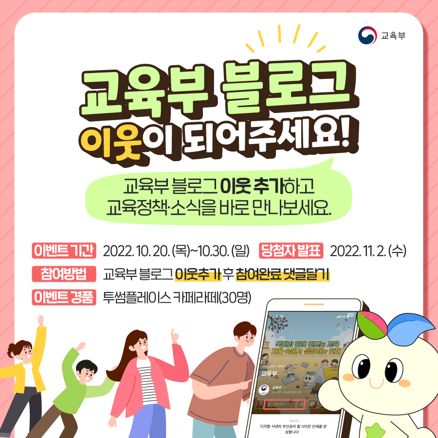 ✅참여방법 : 교육부 블로그 이웃추가 후 참여완료 댓글달기