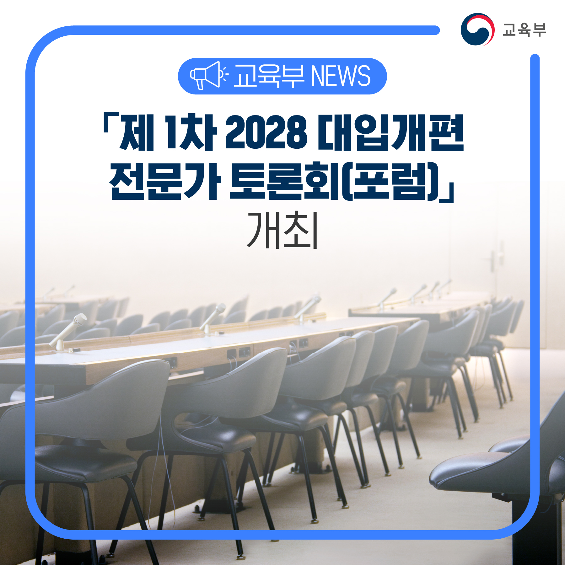 교육부는 대입개편 관련 전문가 논의를 위해 한국대학교육협의회와 함께 「제1차 2028 대입개편 전문가 토론회(포럼)」를 10월 24일(월), 성균관대학교 600주년 기념관에서 개최한다.