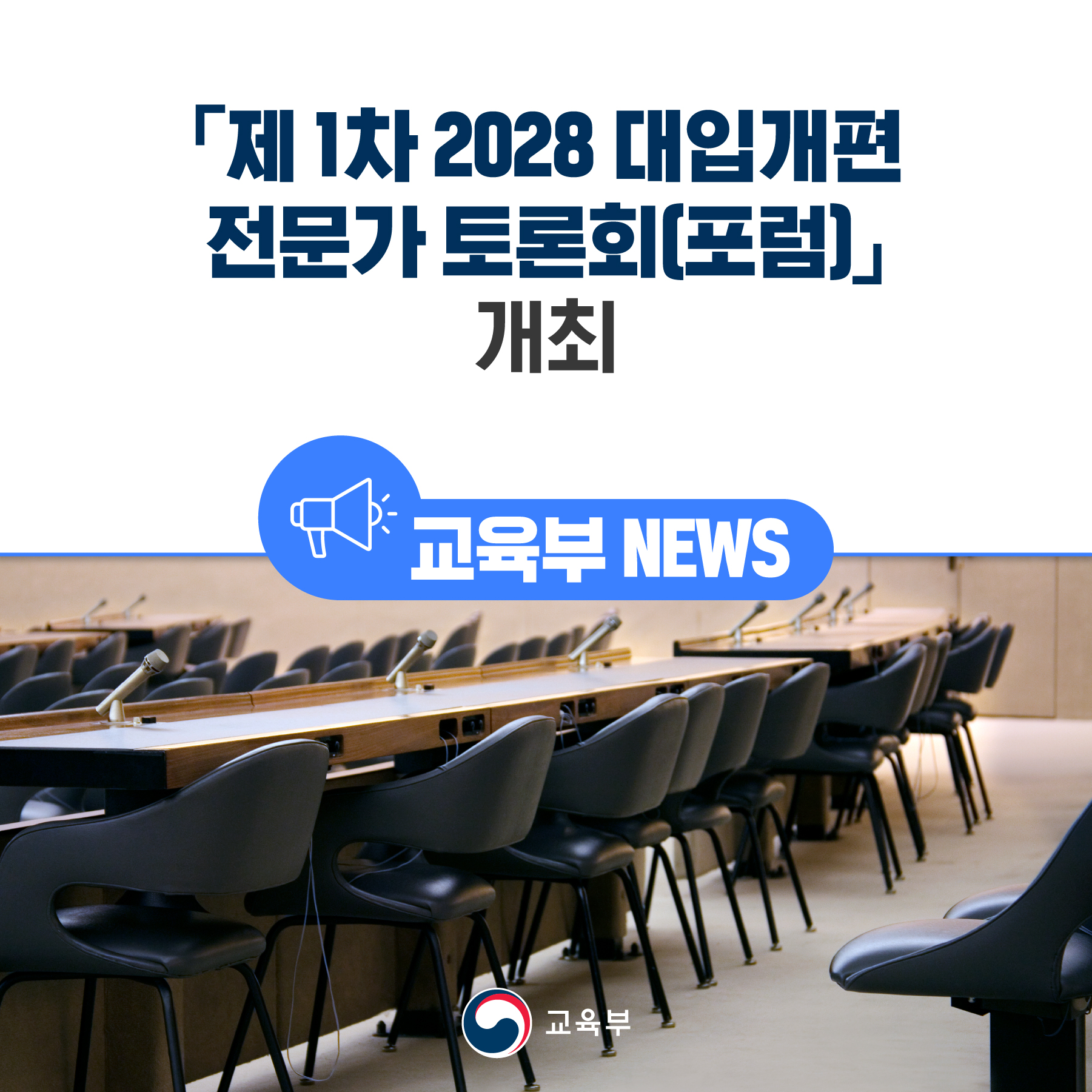교육부는 대입개편 관련 전문가 논의를 위해 한국대학교육협의회와 함께 「제1차 2028 대입개편 전문가 토론회(포럼)」를 10월 24일(월), 성균관대학교 600주년 기념관에서 개최한다.