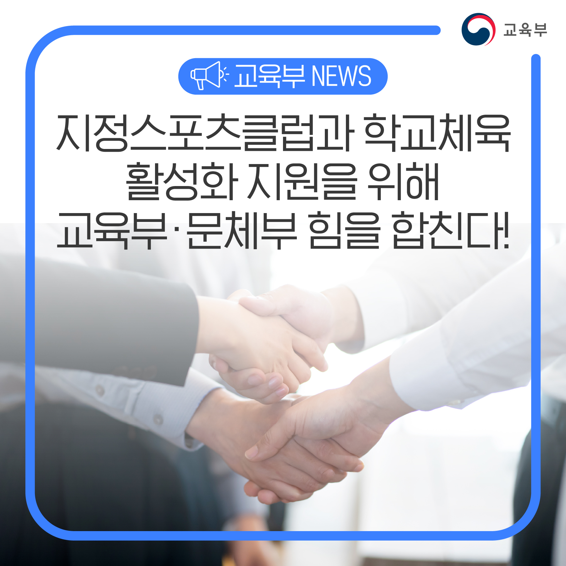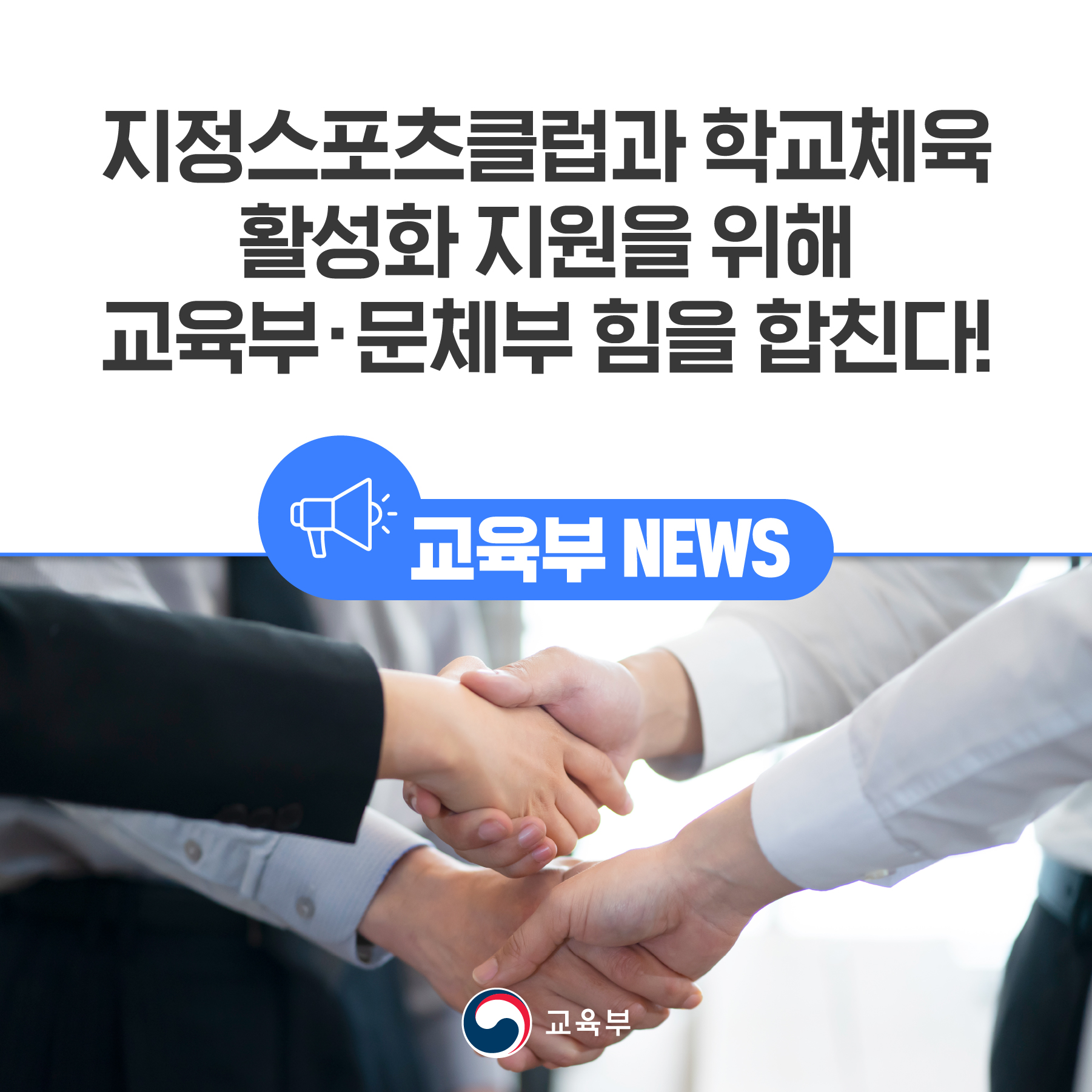 지정스포츠클럽과 학교체육 활성화 지원을 위해 교육부·문체부 힘을 합친다! 본문
