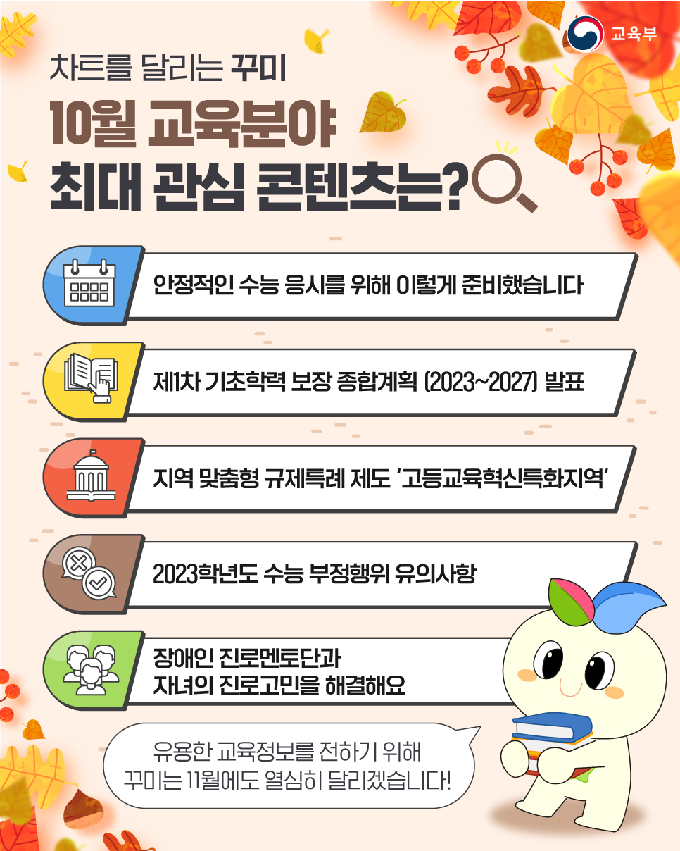 #교육부 #차달꾸 #10월 #수능 #기초학력보장종합계획 #고등교육혁신특화지역
