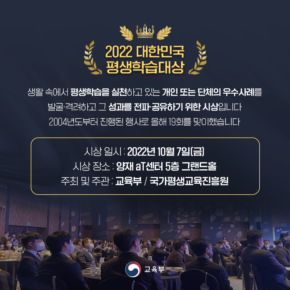 발굴·격려하고 그 성과를 전파·공유하기 위한 시상인 대한민국 평생학습대상!