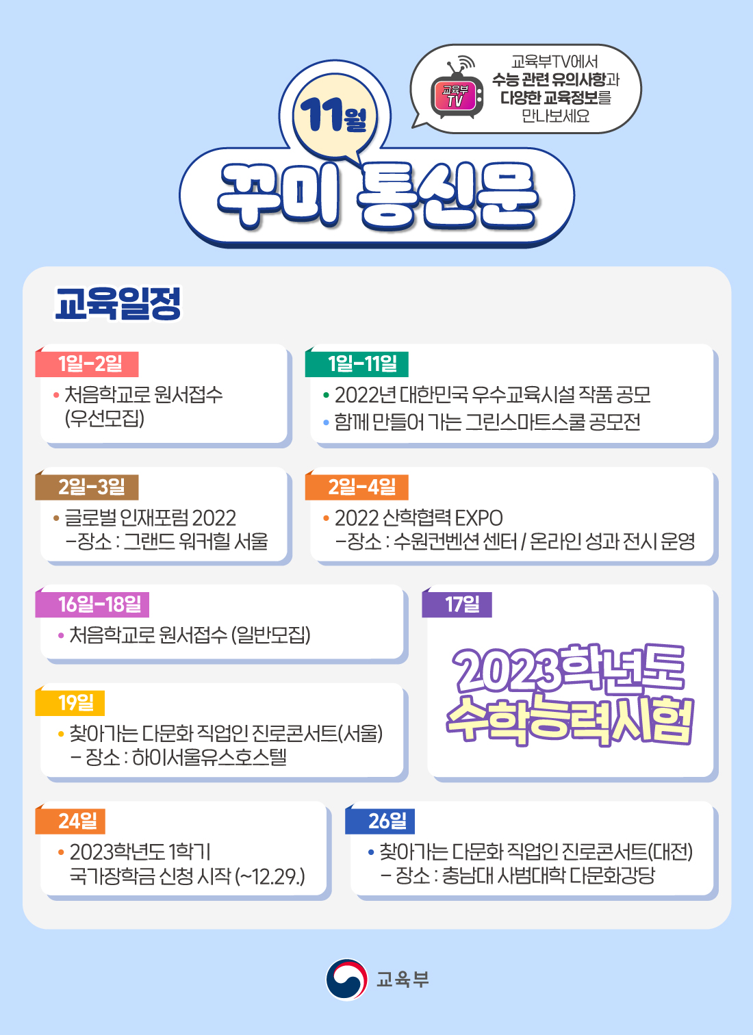 #교육부 #교육소식 #11월 #꾸미통신문 #수능 #국가장학금 #산학협력엑스포