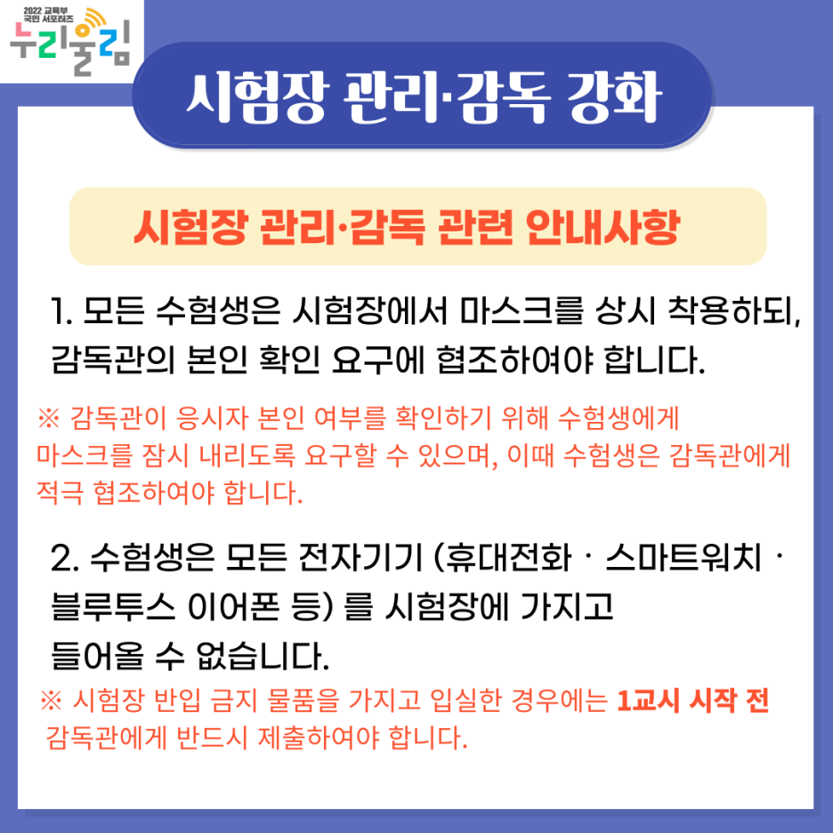 ▶ 참고자료 : 교육부, 2022, 2023학년도 대학수학능력시험 부정행위 방지 대책 발표