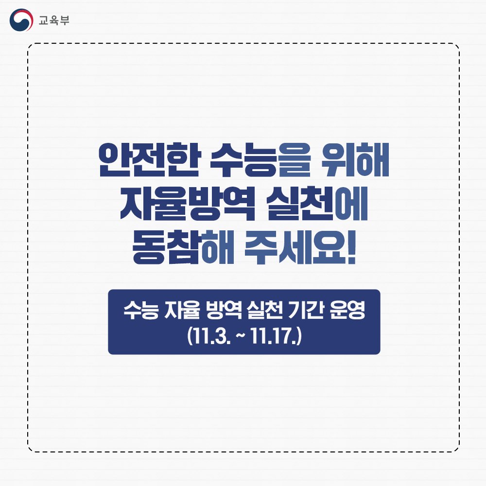 안전한 수능을 위해 자율방역 실천에 동참해 주세요!