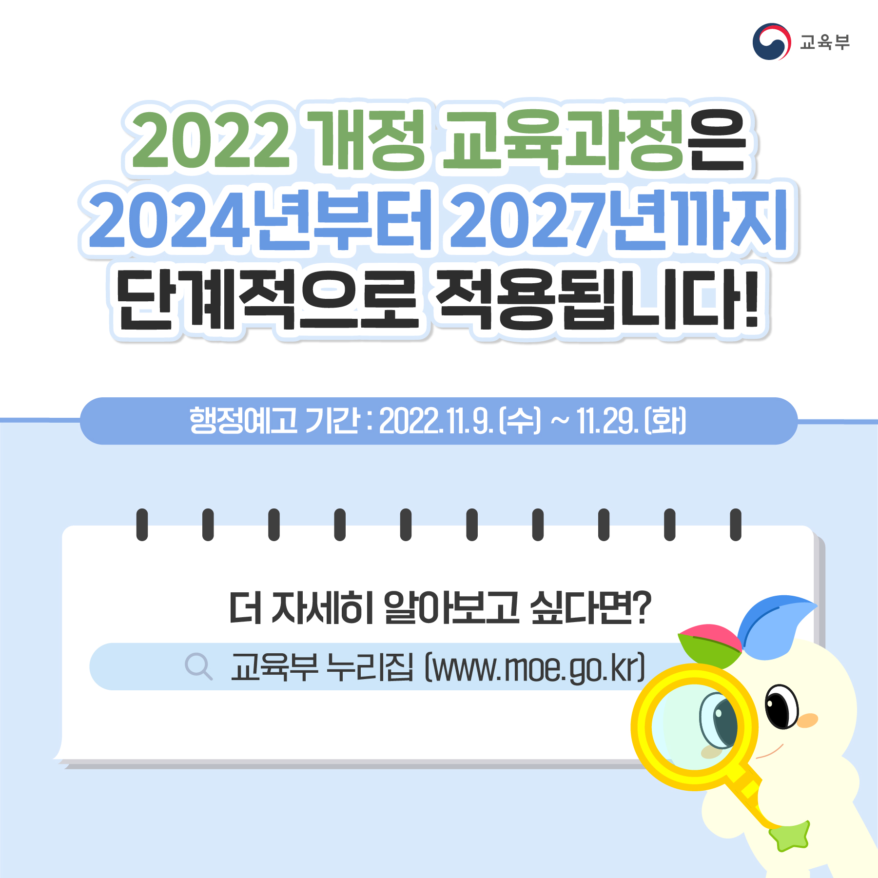 2022 개정교육과정은 2024년부터 2027년까지 단계적으로 적용됩니다!
